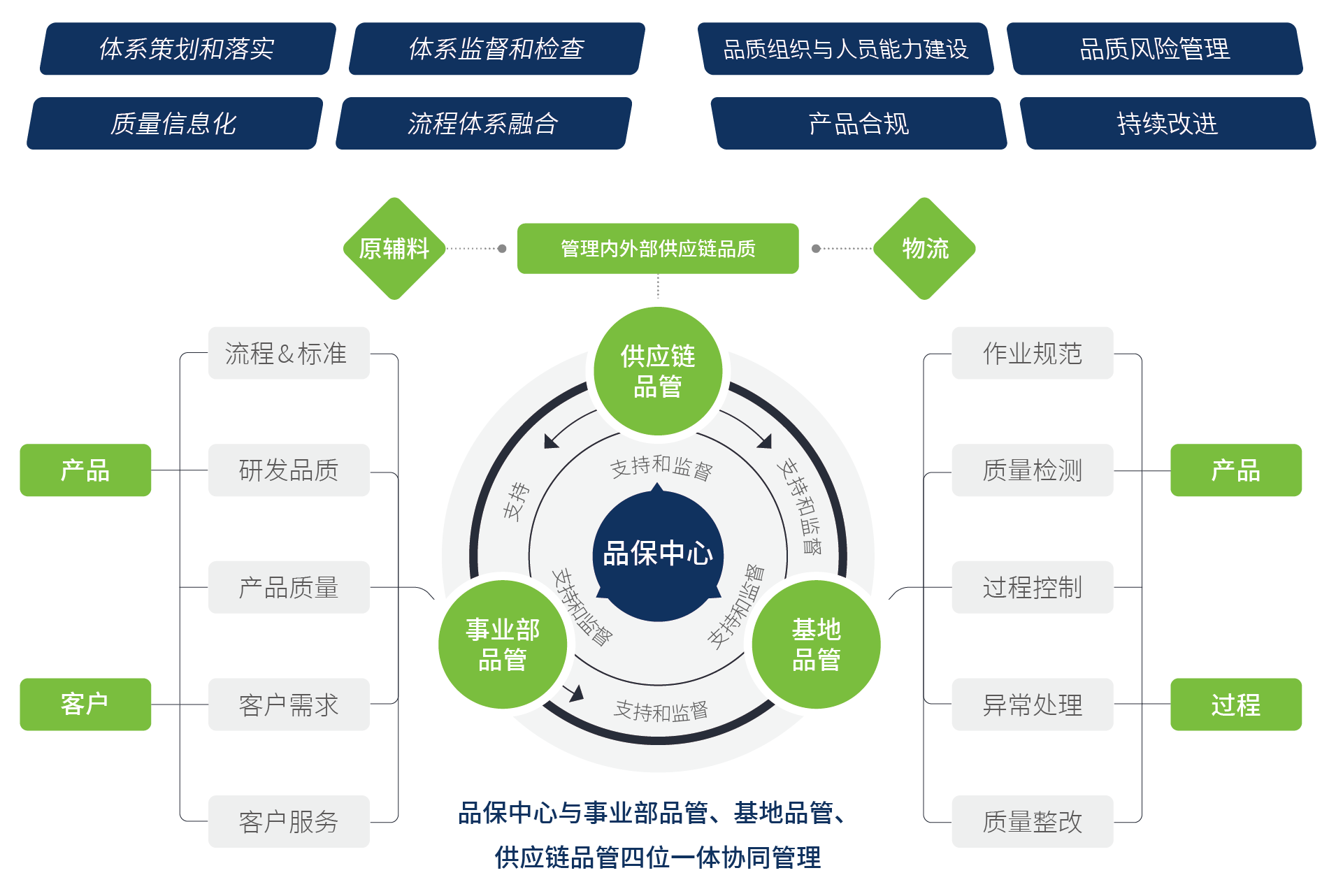 公司着力完善质量管理体系建设,以实现高效运作与管理。公司构建包含品保中心、事业部品管、供应链品管和基地品管的质量管理架构,明晰各部门职责,协同支持并监督公司的质量管理工作。