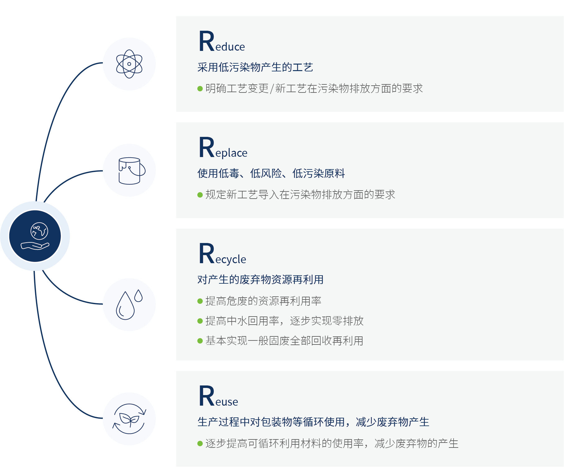 同时,公司基于与环境相关的合规风险、商誉影响风险、财务风险、市场竞争风险,制定了从研发到废弃物处置的全生命周期“4R”控制原则。