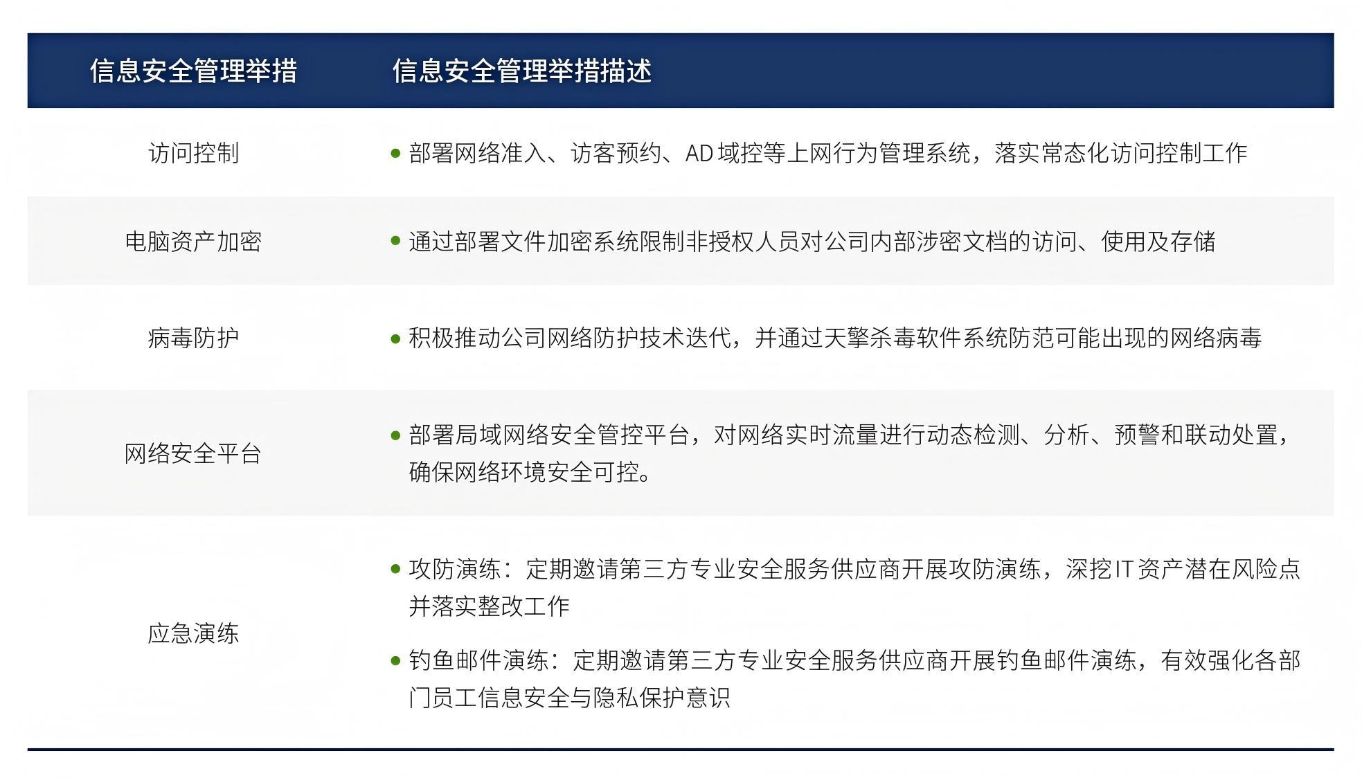 在“依法规范,预防为主。突出重点,严格执行。”的方针指引下,新宙邦高度重视企业与个人信息安全与隐私保 护工作,公司严格遵循《中华人民共和国数据安全法》《通用数据保护条例(GDPR)》等海内外法律法规,同时以《信息系统安全管理制度》《商业秘密管理制度》等内部制度为执行指引,结合国际化业务布局需求与行业领先实践,构建起完善的信息安全与隐私保护管理体系,并由保密管理办公室协同公司各部门与子公司落实信息安全管理举措,有效保障企业海内外业务数据的完整性、保密性及透明度。公司通过法律手段追究侵犯公司商业秘密和知识产权等犯罪行为(包括民事和刑事责任),维护公司合法权益。