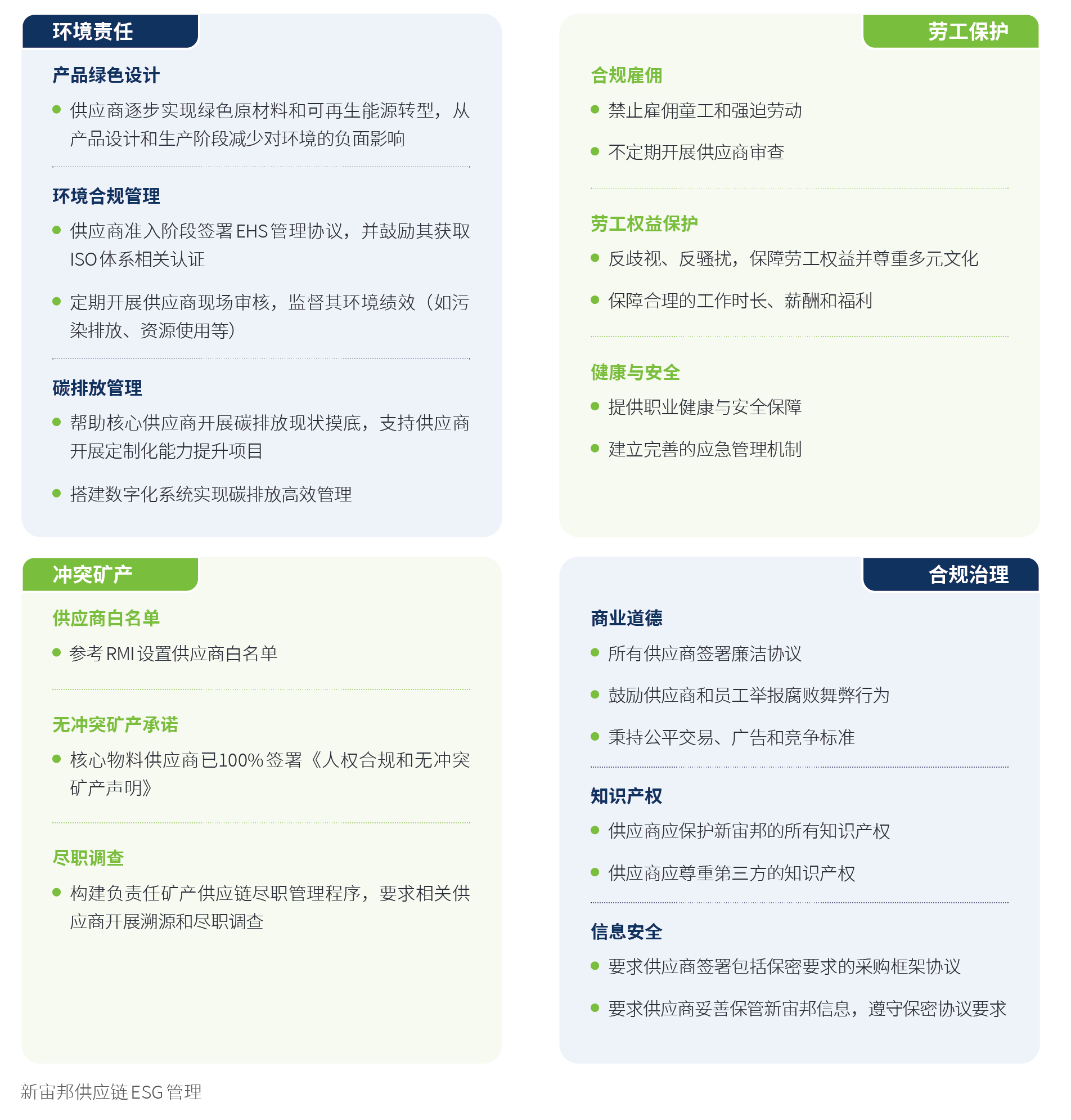 公司立足可持续发展战略布局,将ESG管理深度融入供应链全生命周期管理,以负责任的方式开展业务,践行环境保护、人权平等、冲突矿产和合规治理使命。