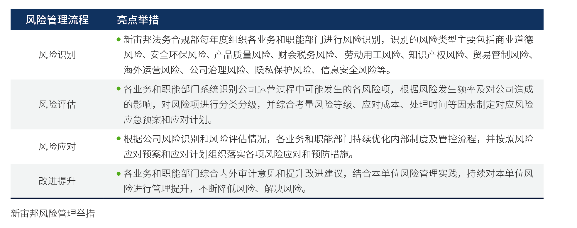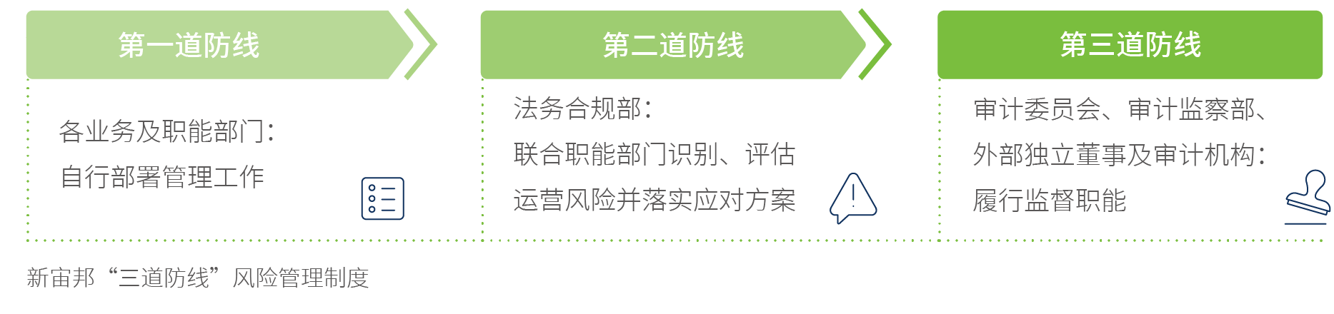对内,法务合规部通过举办“法制合规月”系列活动,并组织开展合规制度宣贯、专项培训及经验交流,持续向员工输出 风险管理意识及应对策略,提升员工风险意识,确保合规风险制度和管理要求的执行成效。同时,由公司审计委员会统筹开展风险监督工作,公司独立董事积极参与公司治理及风险管控流程,提出风险提升改进建议,确保公司重大项目顺利开展。对外,公司各项专业委员会协同第三方审计机构开展针对全业务的风险识别及内控审计,梳理形成内控风险清单,并通过定期或不定期邀请第三方专业咨询机构开展法规解读、流程优化等培训项目为公司管理效能提升提供方向与指引。